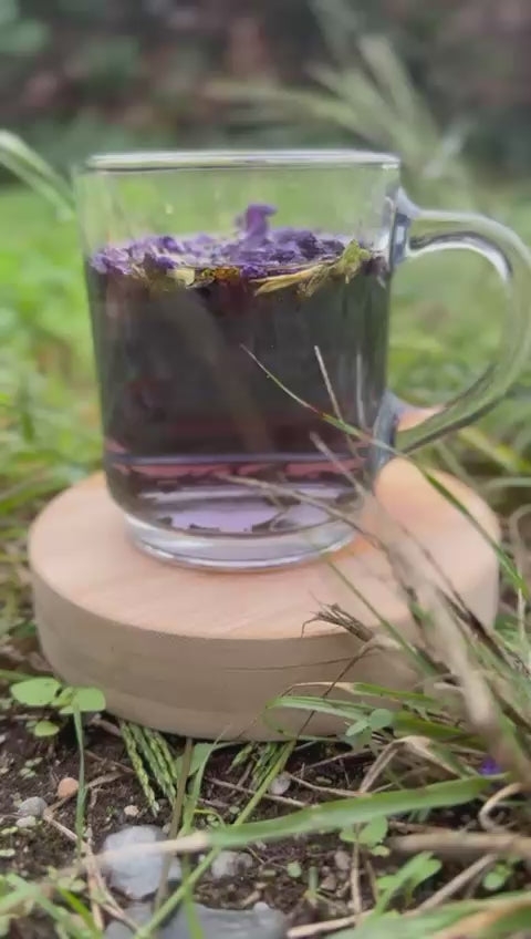 · Véritable potion magique, elle passe du bleu au vert lors de l’infusion. Si vous vous sentez une âme de sorcière ajoutez quelques gouttes de jus de citron et votre tisane prendra une jolie teinte rosée.